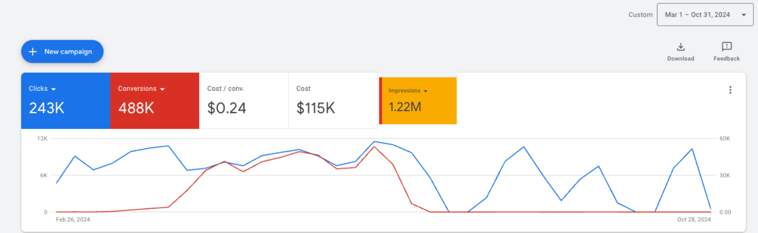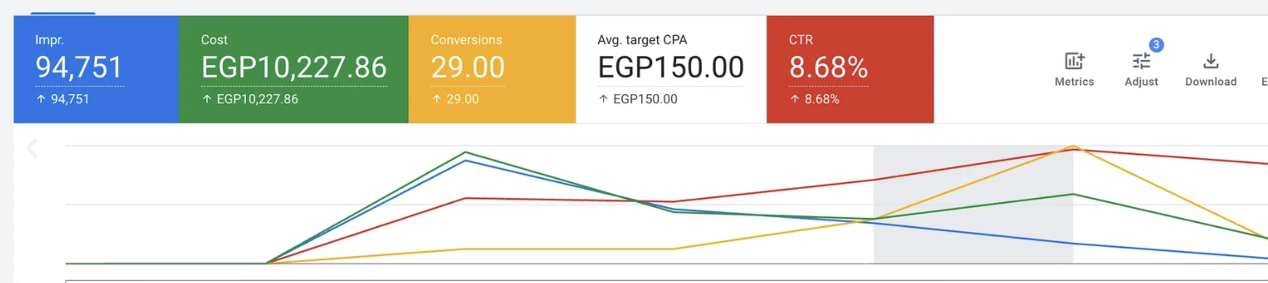 احد عملائي وهي سلسلة صيدليات في الكويت قمت بمضاعفة عائد المبيعات من الموقع الإلكتروني ل٤٠٠٪ وزيادة متوسط المبيعات الشهرية بنسبة ٤٠٪ في أقل من عام وذلك بعد العمل على خطة اعلانات دقيقة تستهدف العملاء اصحاب القوة الشرائية وتحسين الموقع ومحركات البحث